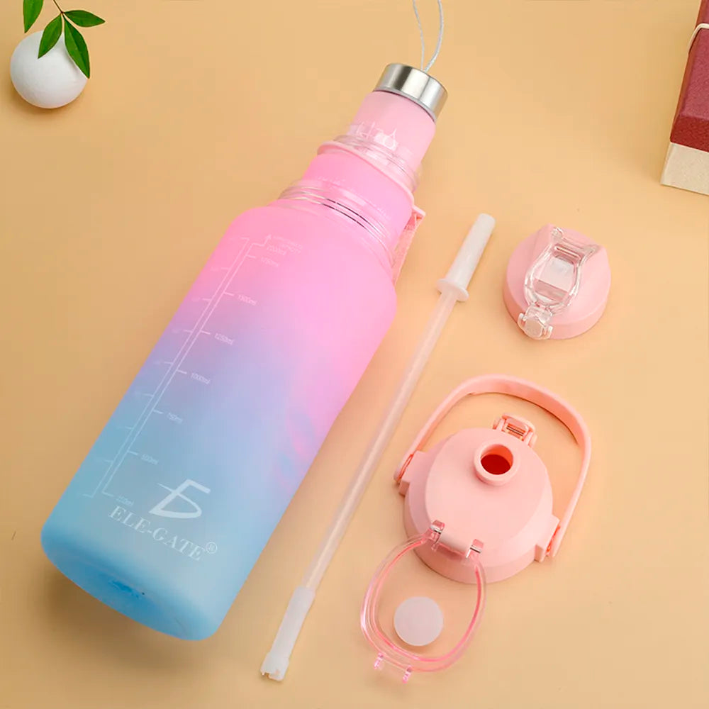 Nuestra botella de agua motivacional de 2L+900Ml+330ML vienen con colores degradados en color mate, citas inspiradoras en idioma inglés y un marcador de capacidad/volumen en mililitros/oz impresa en serigrafía, esta botella para agua es ideal para medir tu ingesta diaria de este vital líquido, recordándote que te mantengas hidratado y bebas la suficiente durante todo el día de una manera creativa.